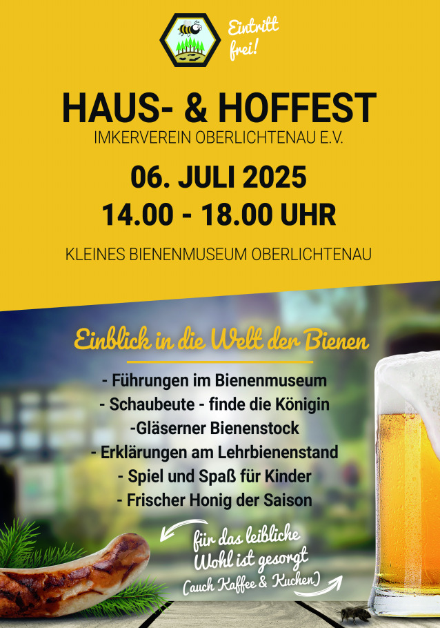 Am 06.07.2025 findet zum Tag der Deutschen Imkerei das Haus und Hoffest am Kleinen Bienenmuseum statt. Für Groß und Klein gibt es viel zu bestaunen und zu tun.